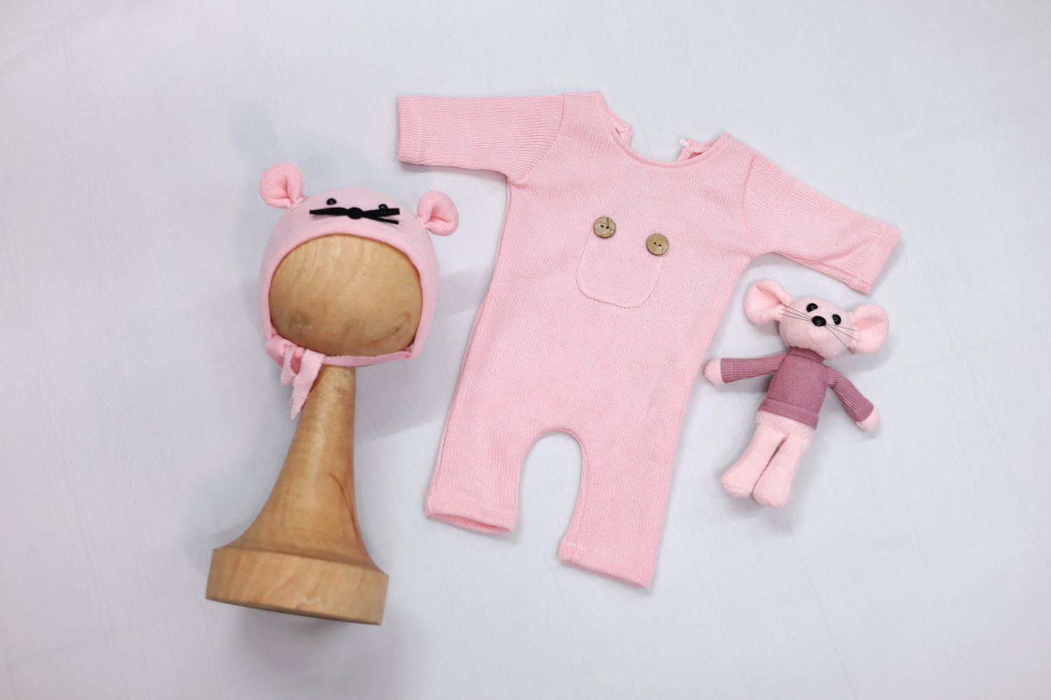 KNITTED JUMPSUIT HAT RAT DOLL SET (Pink) (Copy)
