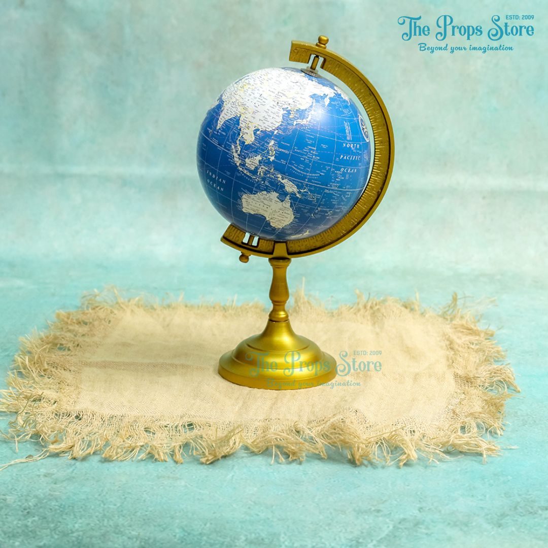 This beautiful Vintage World Globe is designed to add a classy and antique feel to your photoshoots. Designed with a classic map print and mounted on a sturdy aluminum stand finished in a luxurious gold color, this prop is perfect for creating visually rich and thematic setups.